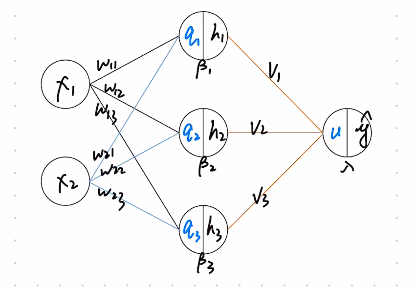 在该神经网络中,q,u是上一层经过线性运算后经过激活函数的结果,h,y是经过激活函数后的输出。其中